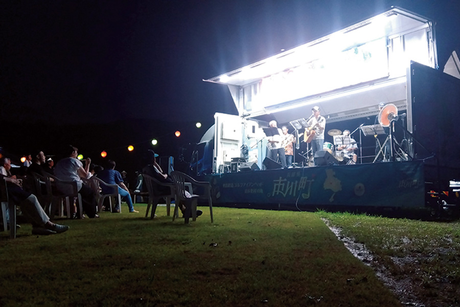 地域振興課の近藤課長の話によると元々は“ゴルフクラブ博物館”的なハコモノを作るというアイデアだったそうなのだが、人口及び観光客が県内ワースト2位という同町にあって「そもそも人が来ないのにそんなもの建てる意味がない。来ないならこちらから行こう」と方針を大転換。そうして出来上がったのがこのトラックなのである。ソーラーパネル、大容量バッテリー、大型デジタルサイネージ等を搭載した事で災害支援や夏祭りのステージとしても活躍し、それでいて当初のハコモノの1/5程度の予算で作られていると聞くと、賞賛以外の言葉がない。