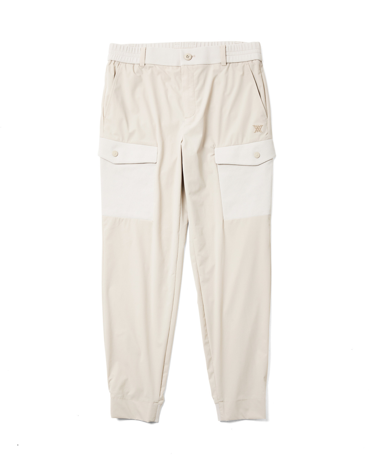 同素材を使用したブルゾンとセットアップで着用したいジョガーパンツ。柔らかで快適な着心地が魅力的。55,330円。