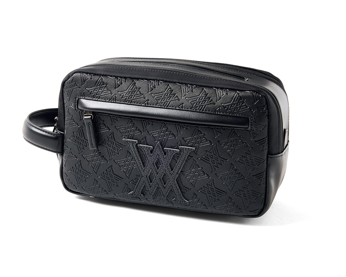 エンボス加工で散りばめたロゴパターンが特徴的な2ジッパーポーチは、小物をすっきりと整理して収納可能。23,650円。