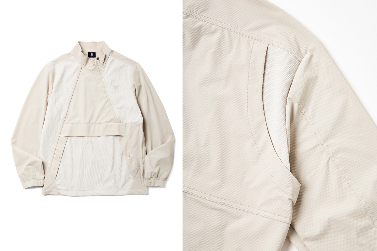 個性的なパネルと異素材の組み合わせにより、スタイリッシュな着こなしが楽しめるブルゾン。52,690円。