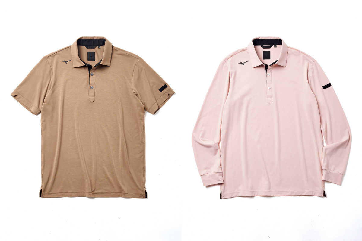 左:シルクのような光沢感と滑らかな肌触りが特徴。襟の形にこだわって仕上げたポロシャツ。19,800円。