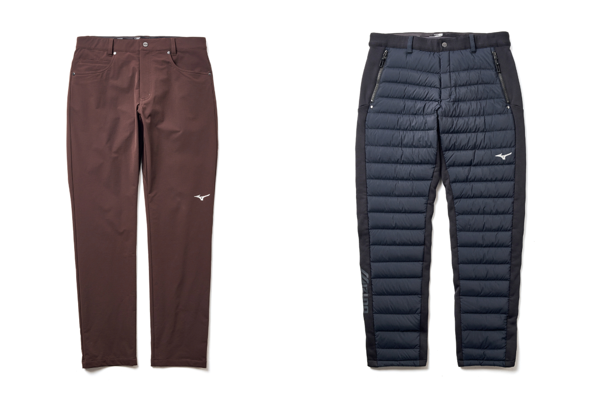 右:写真上のブルゾンと同素材を使用したパンツ。保温性と身体の動きに対応する高い伸縮性が魅力。35,200円。