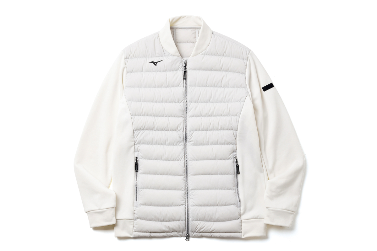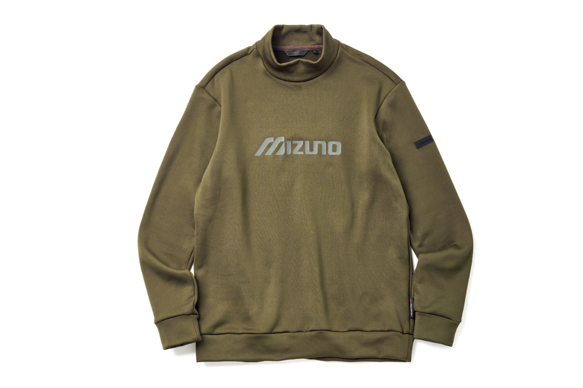 左:柔らかく軽いハイゲージニットで「MIZUNOロゴ」を表現。裏地にはブレスサーモ素材を使用。9,900円。