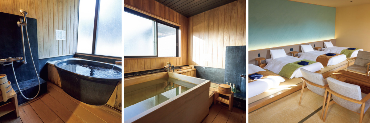 虎の湯が誇る若宮の湯は無色無臭、さらさらとした肌にやさしい泉質で美容にも効果があるという。また、温泉の中でもとくに療養に役立つ泉質をもつ療養泉なので、ラウンドや旅の疲れを癒やすのに最適。客室は1~2人用のツインルームから3~4人用のトリプル、4~5人用のクワッドまで8タイプ。すべての客室に温泉(陶器風呂もしくは檜風呂)を備えているので、24時間いつでも好きな時に利用できるのがうれしい。客室数は44室で全室禁煙だ。
