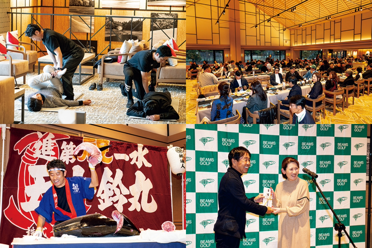 表彰式では華やかなビュッフェとともに豪華景品を発表。総合優勝には〈川奈&富士桜〉で使える300,000円分の旅行券に加えて、BEAMSギフトカード100,000円分、ブランド米30kgが贈られた。設楽社長が直接手渡す場面もあり、ブランドと参加者の距離がぐっと縮まった。