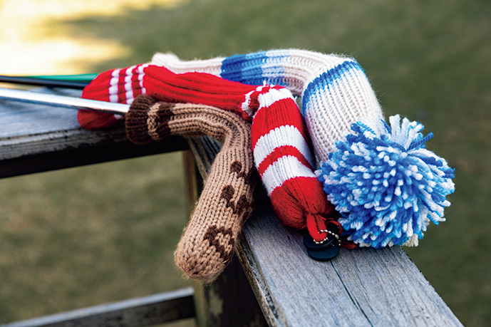 小ぶりなドライバーやロングネックのパターにフィットする「CLUBER BASE」のニットヘッドカバーが秀逸。