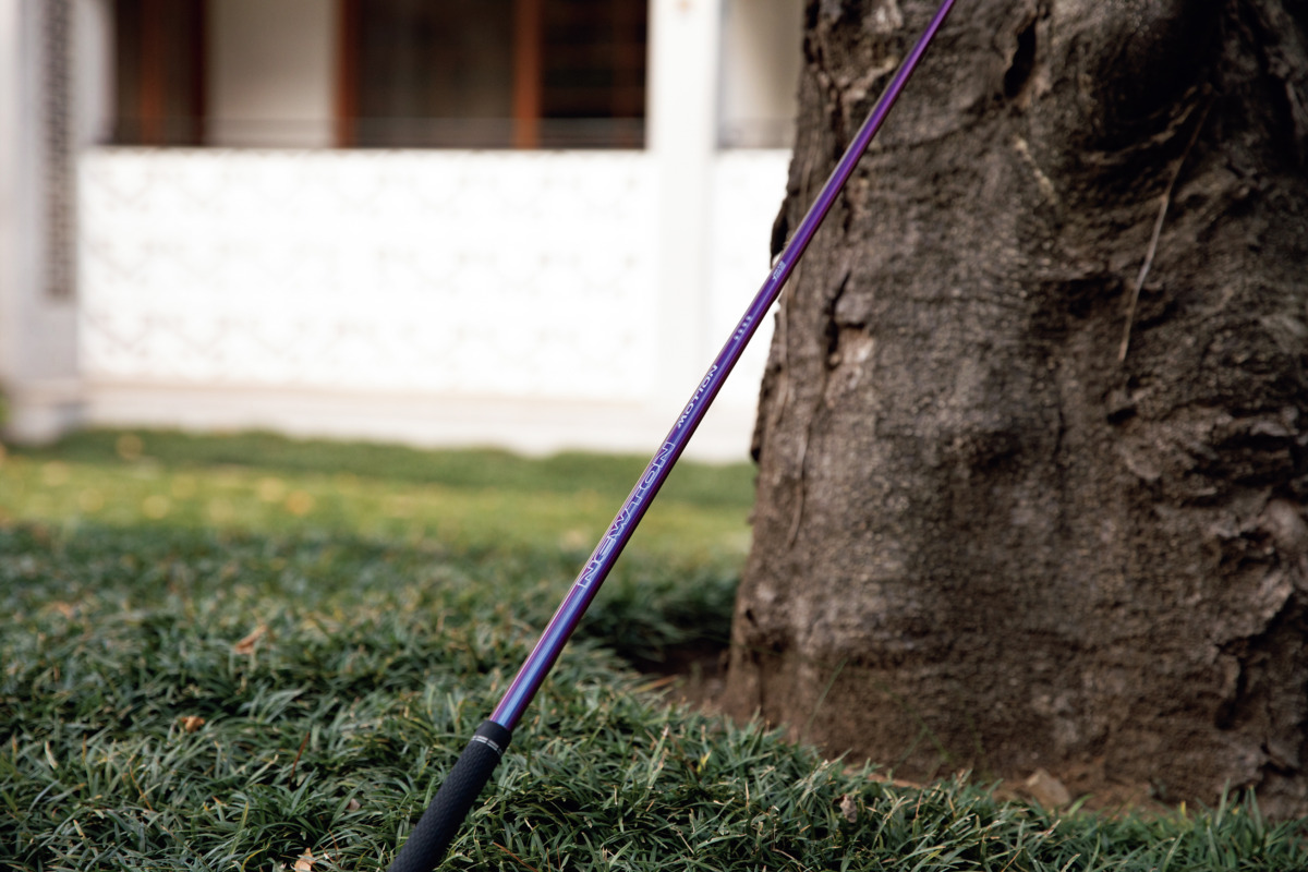 久々に訪れたハワイでもしっかりゴルフに散財してきたというジャック氏。「GO/LOOK!」のアンテナショップもオープンさせるなど多忙を極める中にあっても、全身を自ら手掛けたアイテムで埋め尽くし、テストするスタイルは不変。「人柱となって試した自信作は、今春正式ローンチの『サンマウンテン』と『クチブエ〜』によるコラボキャディバッグ。大手セレクト中心に限定5社の一角に選ばれた実力を是非お試しいただきたい」と本人。複数ブランドであってもどこか統一感を醸し出すセンスは彼ならではのものだろう。