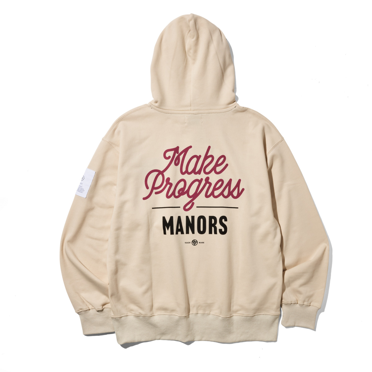 コットンポリエステルのスウェット素材を使用したフーディ。バックに施した2種類のプリントや左袖と右前裾に配した織ネームなど、こだわりが詰まった一枚。22,000円