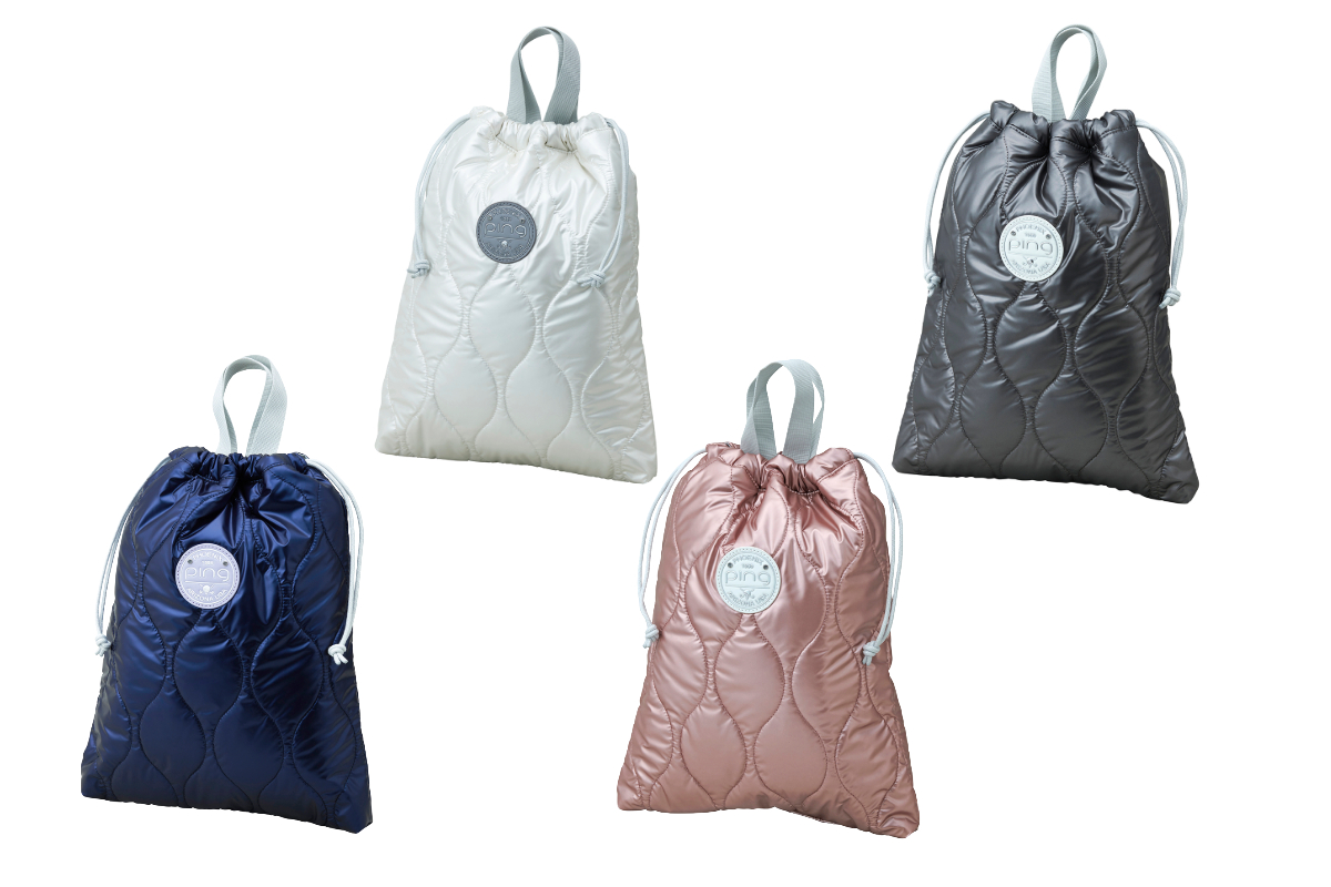 ボールケースやミニポーチ、シューズバッグといった小物類も、すべて『PUFFY』らしいキルティングデザインで統一されています。
