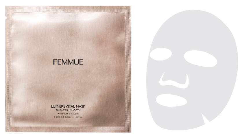 FEMMUEを代表する「ルミエールライン」のシートマスクがリニューアル。特許技術による“ハイドラドライバイオセルロースシート”を採用し、ヒアルロン酸やペプチドを配合することで、包水力と密着感がさらに向上しました。ビタミンC誘導体やナイアシンアミドに加え、肌荒れ防止成分グリチルリチン酸2K、ツボクサ由来のマデカッソシドを配合。強風や花粉、乾燥でデリケートになった肌を整え、なめらかでキメの整った印象へ導きます。