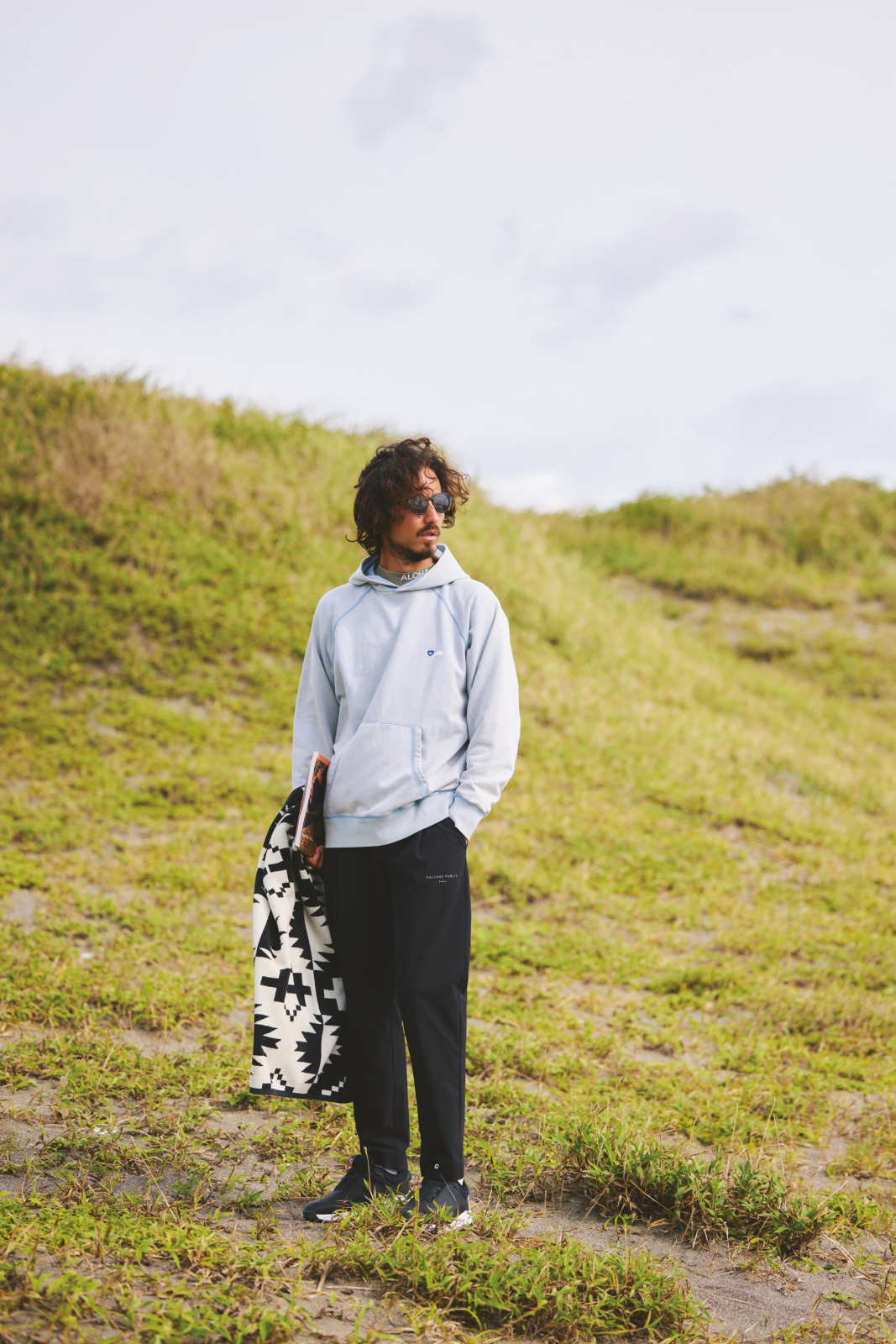 空と海、乾いた大地。自然とともに生きるハワイの感覚を、色・形・機能に落とし込む。風景に溶け込みながら、街とフィールドを軽やかにつなぐ一着。