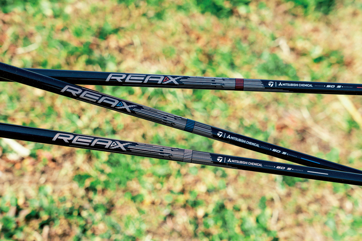 (上)赤、青、白の3色をキーカラーとした3種類の特性が異なる純正シャフトが用意される。マッチングを調べるのは簡単なフィッティング。それにより、最初からマッチング性の高い1本を装着することができるのは嬉しい。(下)気になっていた3モデルをチョイスして試打検証。