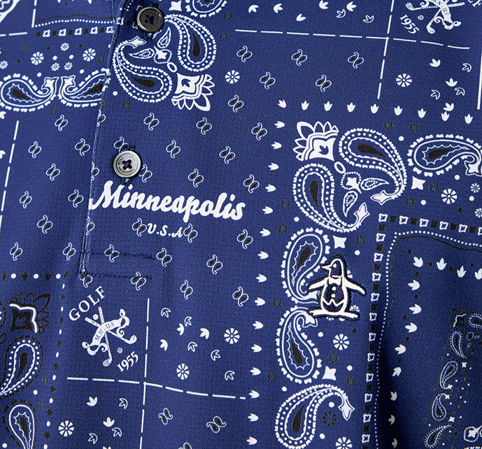 夏ゴルフの気分を上げてくれるオリジナルのバンダナ柄ポロシャツ。ムレ感を軽減する高通気の機能が備わった素材を使用。
