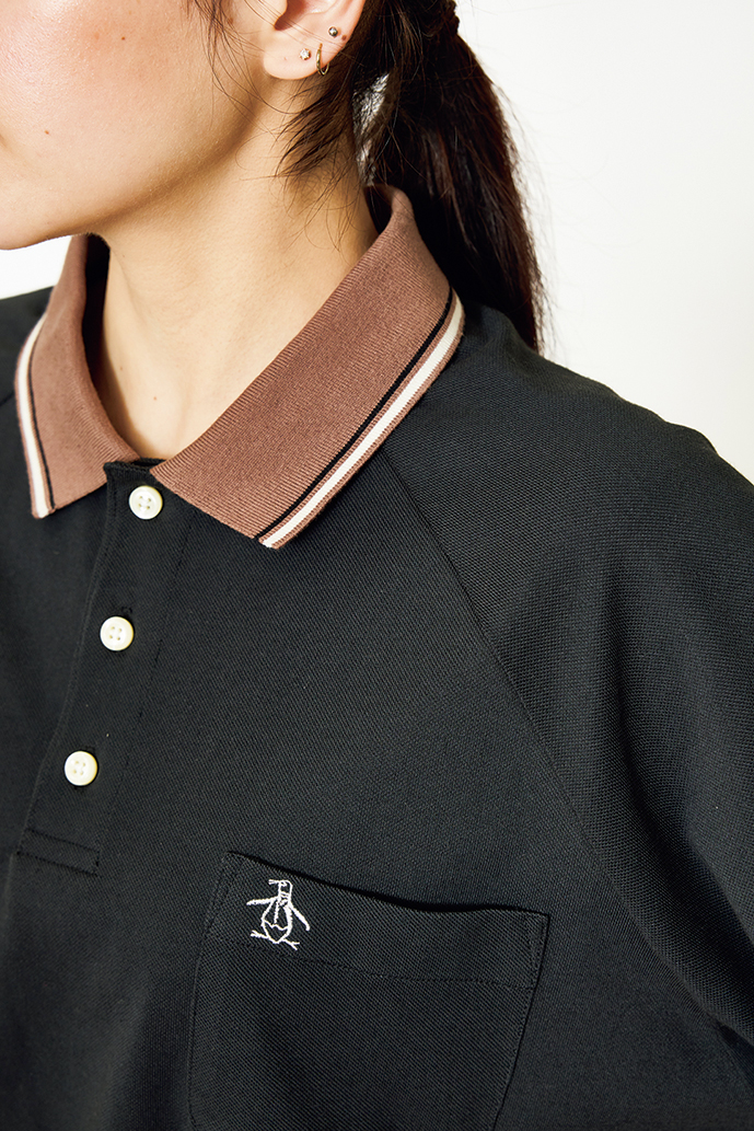 レディス用に新たにデザインした「タイニーロゴ」が映えるポロシャツには、首元をすっきり見せるベースボールカラーを採用しています。