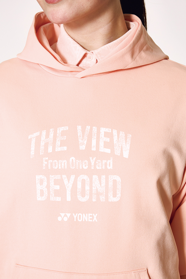 スイングのしやすさに配慮したカッティングを採用したフーディを主役にしたスタイリング。ショットからパッティングまでストレスフリーな着心地を実現。笑顔溢れるラウンドをサポートしてくれます。サンバイザー¥4,950、フーディ¥18,700、ポロシャツ¥13,200、スカート¥15,400、ソックス¥2,420、シューズ¥25,300、グローブ¥1,980(すべてヨネックス)