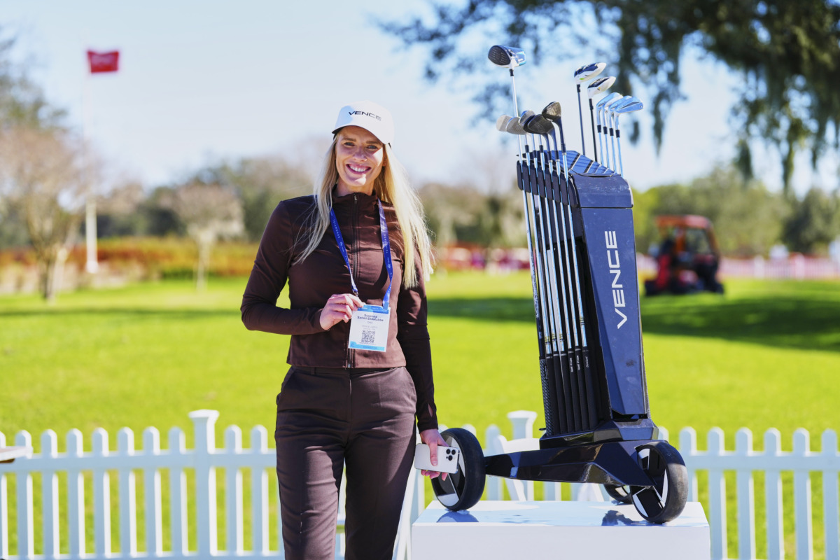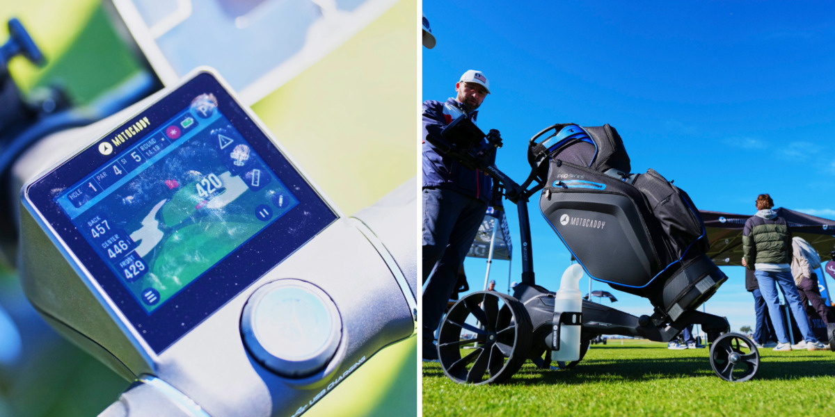 2004年創業のゴルフカートブランド「Motocaddy」。専用のGPSアプリを搭載するなど、リモコンやリモートによる自走が可能な電動カートは27ホール以上に対応するリチウムバッテリーを搭載する。