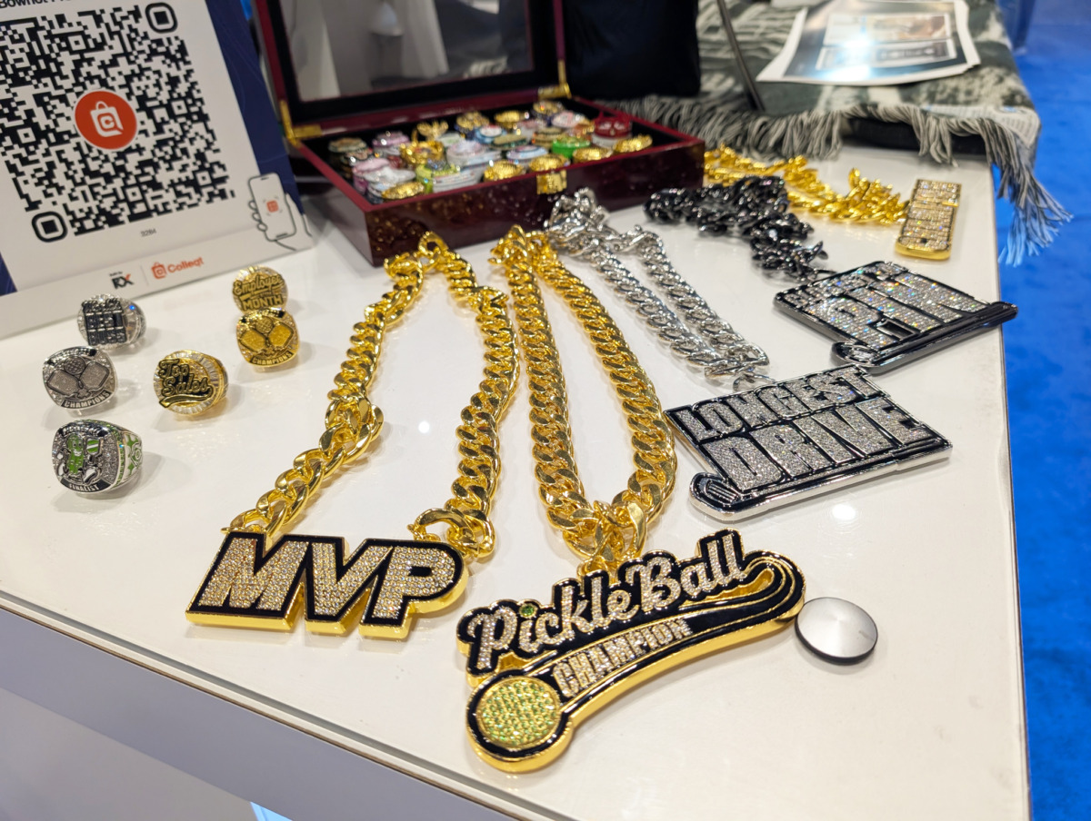 コンペなどでの受賞者用アクセサリー。金ピカのチェーンやMLBのチャンピオンリングを思わせる物も。