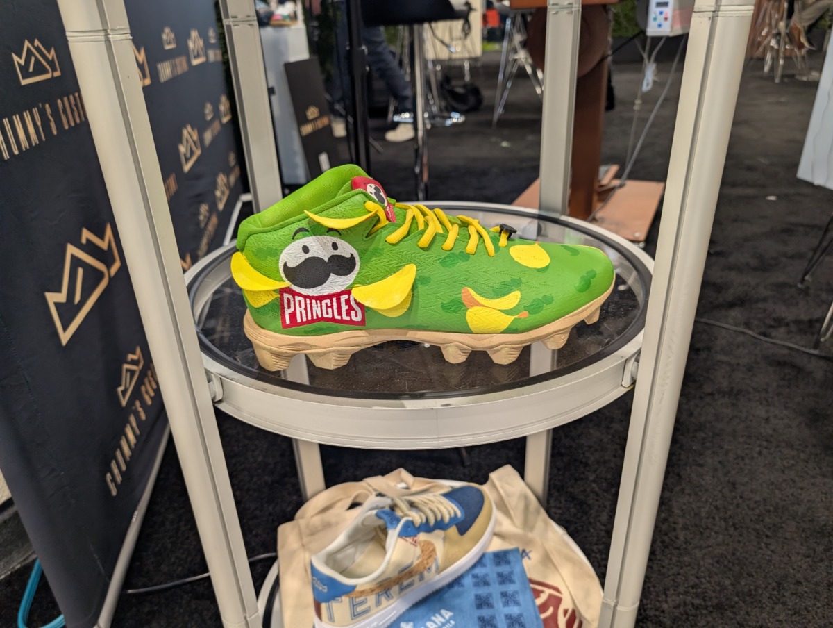 個人や企業向けのカスタムシューズ「CHUMMYʼS CUSTOMS」が展示した「プリングルズ」。