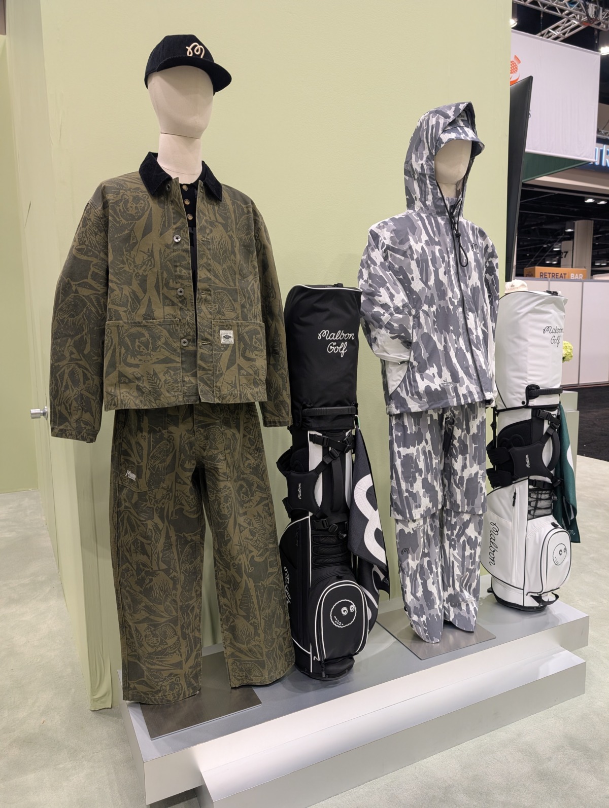 ワークウエア風のセットアップやアーバンカモ柄のレインウェアが新鮮だった「Malbon Golf」。