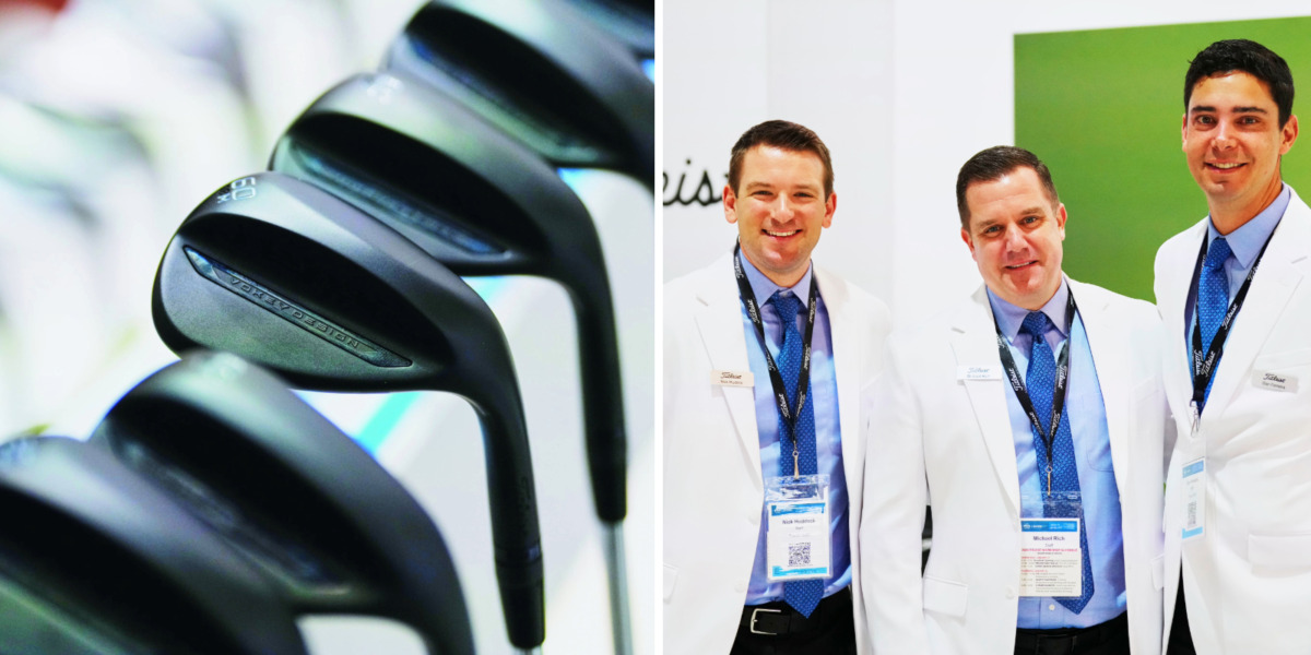 スタッフは白いジャケットがお約束の「タイトリスト」のブースでは「ボーケイ・デザイン」の新型『SM11』がお披露目。反射を抑えたマットブラックのヘッドがクール。黒ヘッド人気を印象付けた。