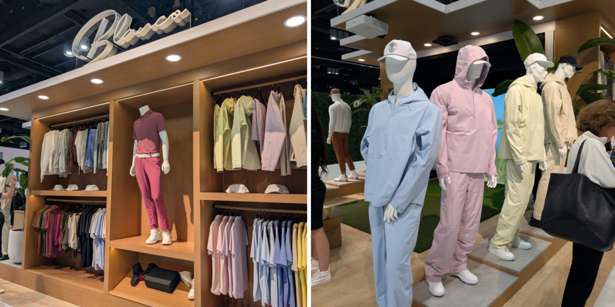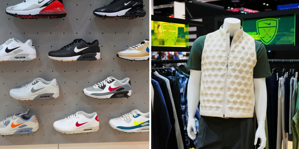 『AIR MAX ʼ90』や『AIR MAX ʼ95』のゴルフシューズを一挙投入。AIRモチーフのベストや「NIKE GOLF」の旧ロゴ復活、シェフラーの着用モデルなどブランド復権を感じさせる勢いだった。