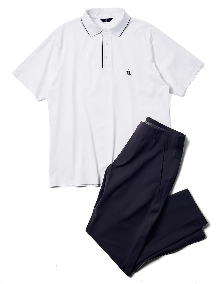 マンシングウェアの新製品発表会は楽しい。紹介される新テクノロジーに毎回驚くのだ。今シーズンの注目は「無縫 MU-SEW(ムソウ)」、そして「6Dパターン」。前者は下の写真のシャツとパンツ両者に採用される技術で読んで字の如く。生地と生地を貼り合わせる無縫製技術で、肌あたりが抜群に心地良いのが最大の長所。まあ、とにかく着心地が良い。