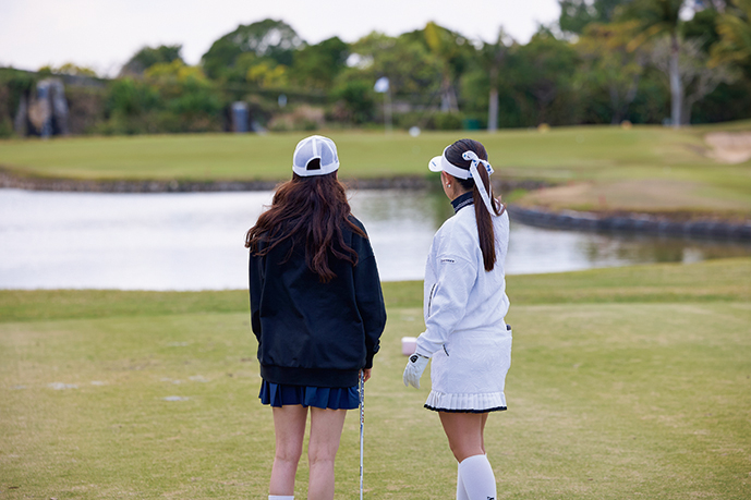 優雅なゴルフリトリートの幕開けを飾ったのは、那覇市内の人気バー「エル レキオ」のバーマネージャーである杉浦聡氏を迎えてのカクテルレセプションだ。河本結プロ、河本力プロの姉弟、地元沖縄出身の宮里美香プロ、そして臼井麗香プロによるトークショーでは、飛距離アップの秘訣や、かねひで喜瀬カントリークラブの攻略法など様々なテーマで盛り上がり、参加者たちは翌日のプレーに思いをはせた。