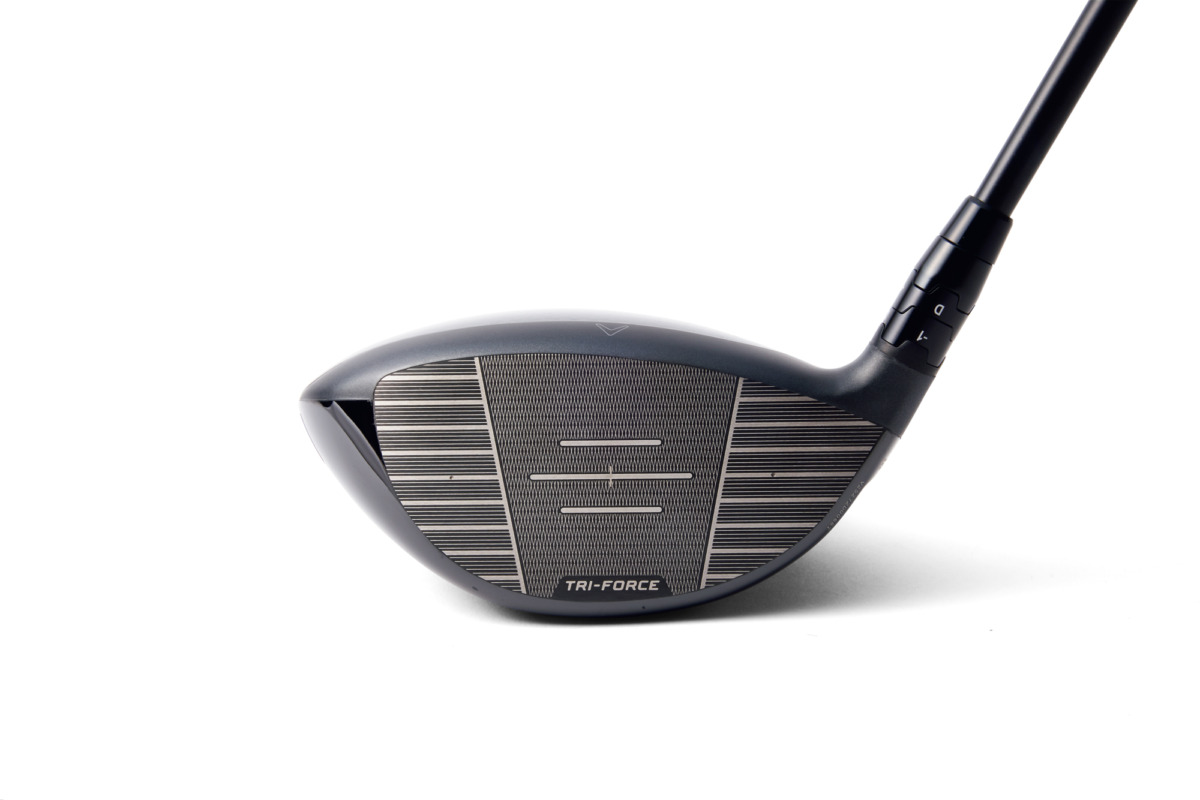 この打感と初速を実現しているのが、業界初となる3層構造「トライフォースフェース」だ。圧力に強いチタンと張力に強いカーボンを薄いポリメッシュで接着するマルチレイヤーにより、ボール初速を上げながら耐久性も向上。さらに、キャロウェイが長年培ってきたAI設計による弾道補正効果も向上している。