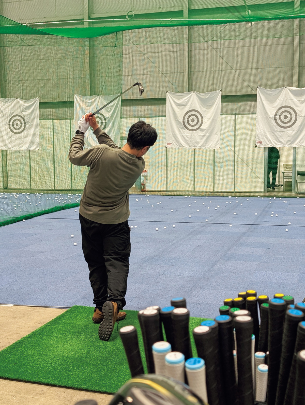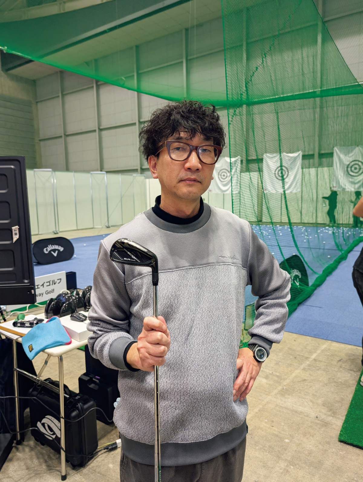 遠藤製作所のエポンが以前から気になっていたYさんも待望の試打。「S:Rアイアンは打感の気持ちよさが素晴らしい。室内なんで球筋は確認できませんでしたが、トラックマンのデータはマイクラブより飛んでました」