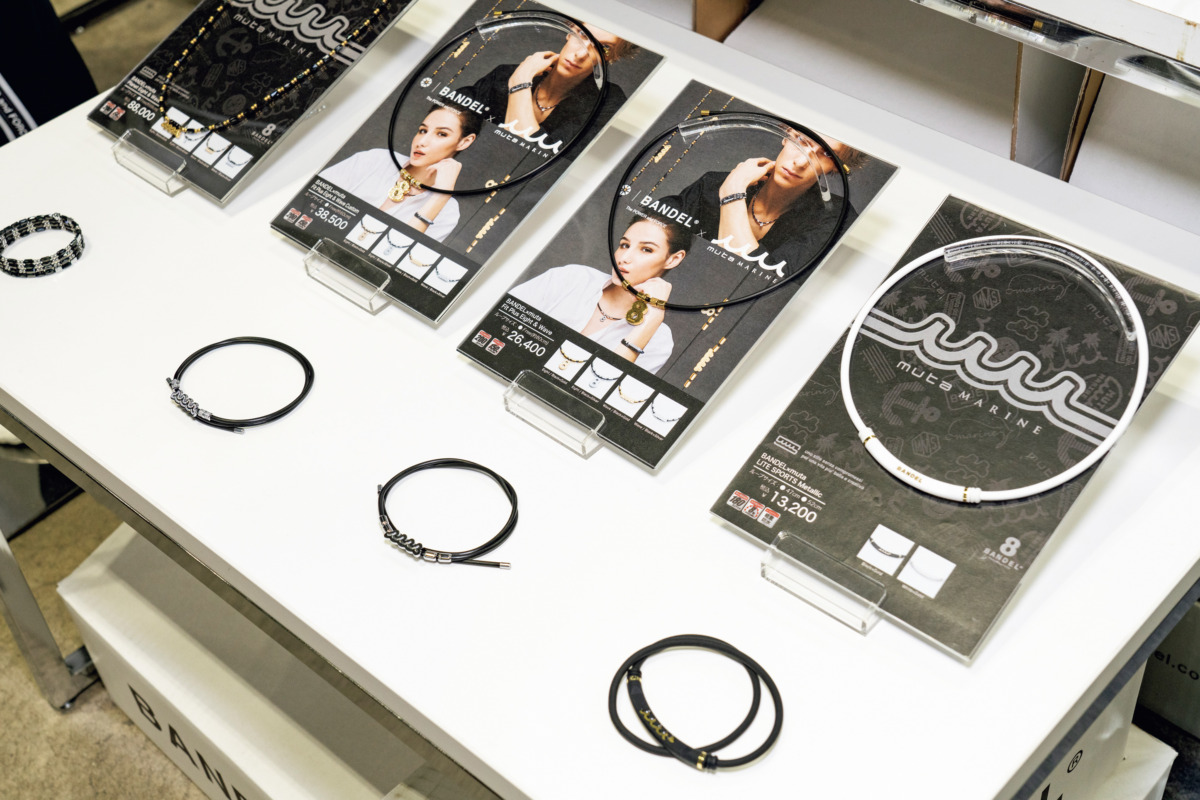充実の男女アパレルが揃うブース。フィッティングルームも完備され、まるでショップのような充実っぷり。モデルが着用したショーのアイテムも、実際に見て触れて試せるのは楽しい。さらにJGF会期中は未発売の春夏ウェアを先行販売するなど、現場でしか味わえない高揚感と、いち早く手に入れる楽しみも来場者を惹きつけた。