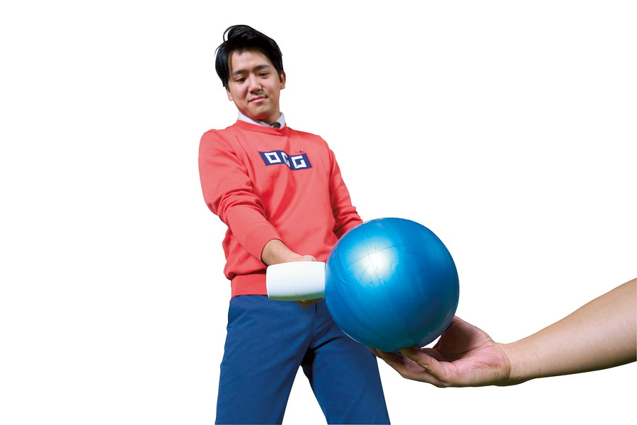 トンカチでボールを横から叩くことをイメージするとわかりやすいが、目標方向に対して、後ろ側にある右手のほうがしっかり力を入れて叩くことができる。前にある左手では、力を入れるために手首を折るなど独特な形になってしまう。