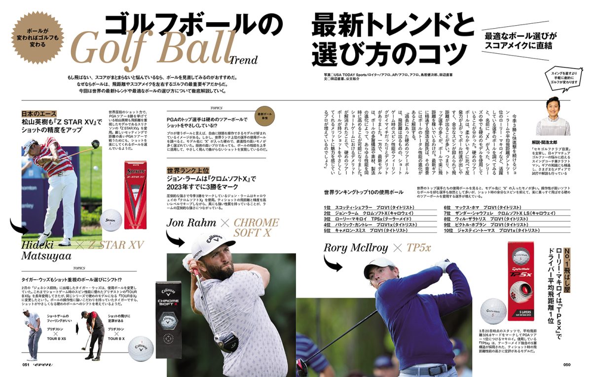 「シャフト」の役割や重要性について聞きました。さらに、ゴルフボールの最新トレンドと選び方についても総力取材を敢行! その他にも、人気アパレルの春夏アイテムをご紹介するブランドカタログや、ジャパンゴルフフェア取材リポート、国内女子ツアーの現地リポート、沖縄ゴルフ旅の最新ガイドなど、内容盛りだくさんの6大特集記事に加え、ご好評いただいている「プロゴルファー」「ゴルフYouTuber」などの人気連載陣の記事も充実!
