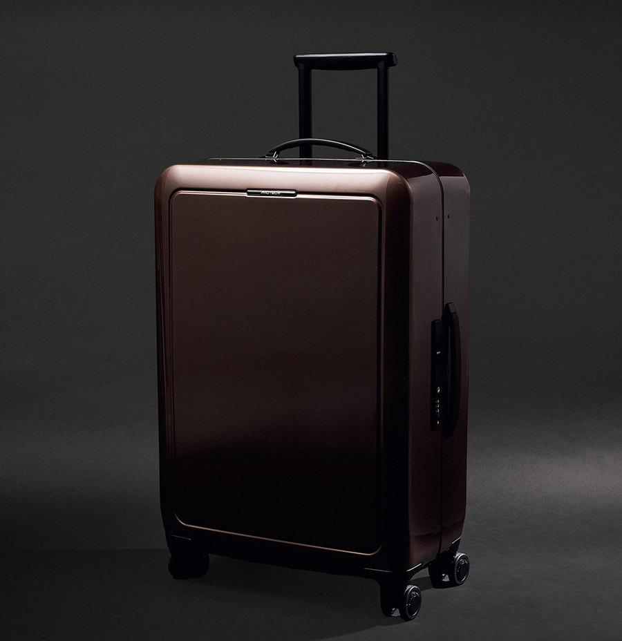 旅行ブームが華やかなりし今日この頃、新しいスーツケースでも欲しいな、と思っていたところに良き出会いあり。日本が誇るラゲッジブランド「プロテカ」の「J5コレクション」だ。“JAPAN LUXURY”をテーマに掲げるだけに、実に“日本的”なのだが、特にこの「シスイ-F」シリーズはまずルックスが面白い。和名のボディカラーが与えられていて、写真の「煤竹色」は鏡面、「黒壇」は木目調と、それぞれ異なるシェル表面加工が施されるのだ。