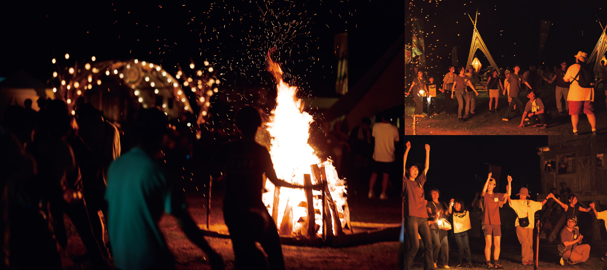 ステージではアウトドアを愛するゲストによるトークライブ、アーティストたちによるミュージックライブが繰り広げられた。日が落ちるころにはステージ前の広場でキャンプファイヤーが焚かれ、炎を囲み輪になって「マイムマイム」を踊る。大盛り上がりの一夜となった。