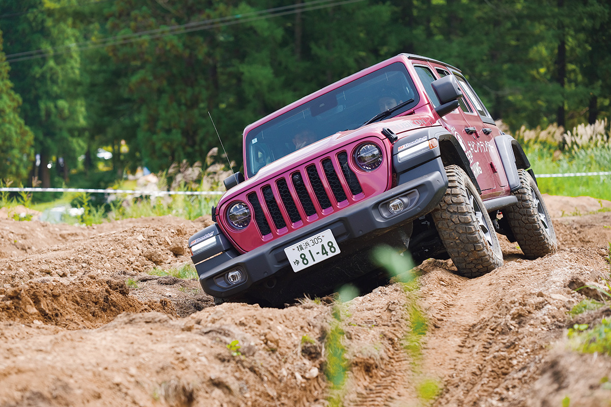 会場内の特設コースにて、参加者がJeep車に同乗してオフロードを体験試乗。急斜面の上り下りや、写真のような大きな凹凸を走るときには思わず「うわっ!」と声が上がるが、Jeep車ならラクラクとクリア。通常ではなかなか体験できない路面の走りを堪能した。