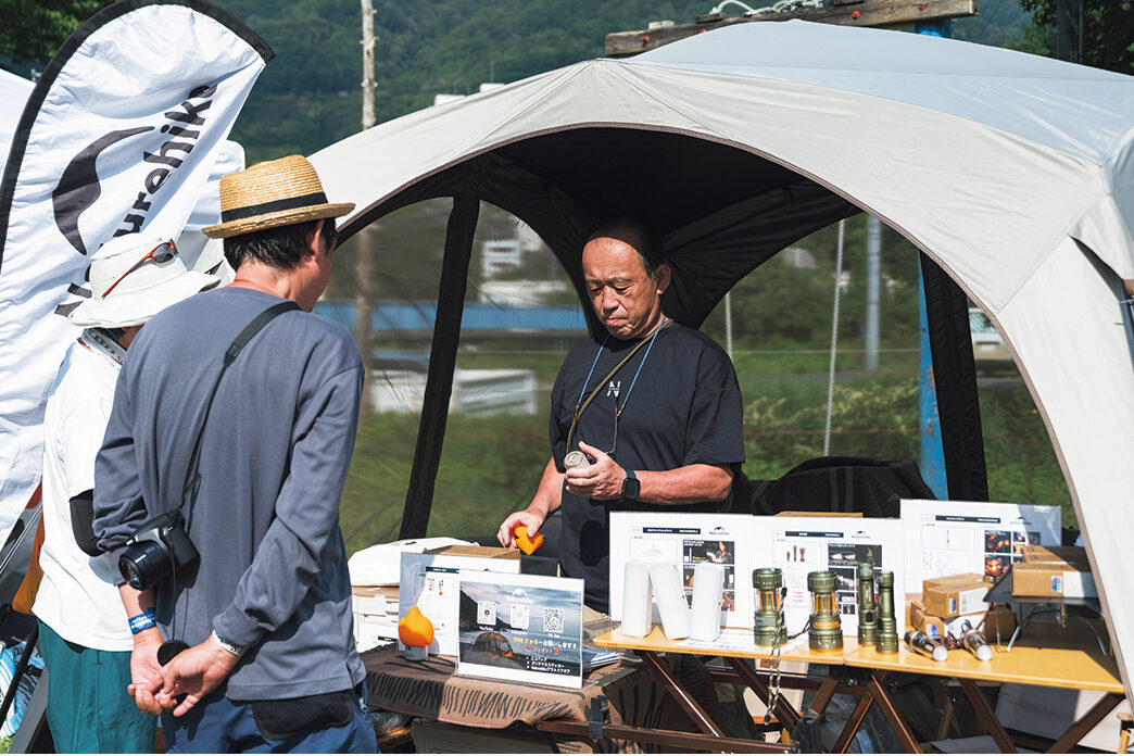 アウトドア×暮らしのショップ、GRID の出店のほか、吊るされたマッチに火をつける早さを競う“マッチファイヤー”も。