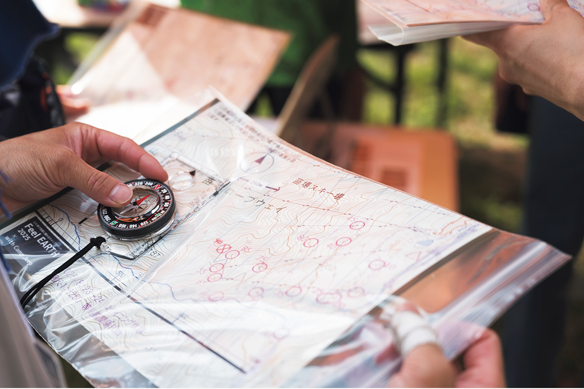 頼りになるのは地図とコンパス。会場内に設置されたチェックポイントを家族や仲間と探して楽しむ冒険型アクティビティ。