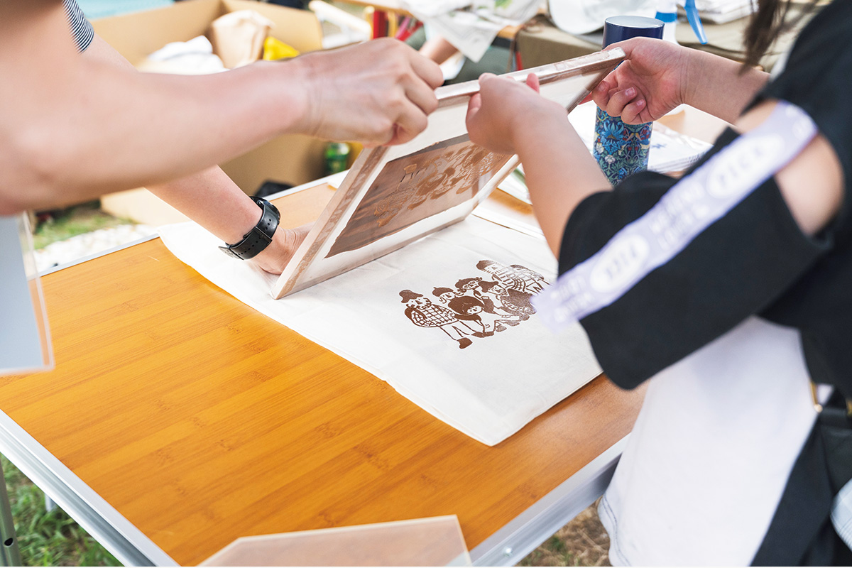 手持ちアイテムにシルクスクリーン印刷する体験会を開催。ランドネ公式キャラクターをプリントしてイベントの思い出に。