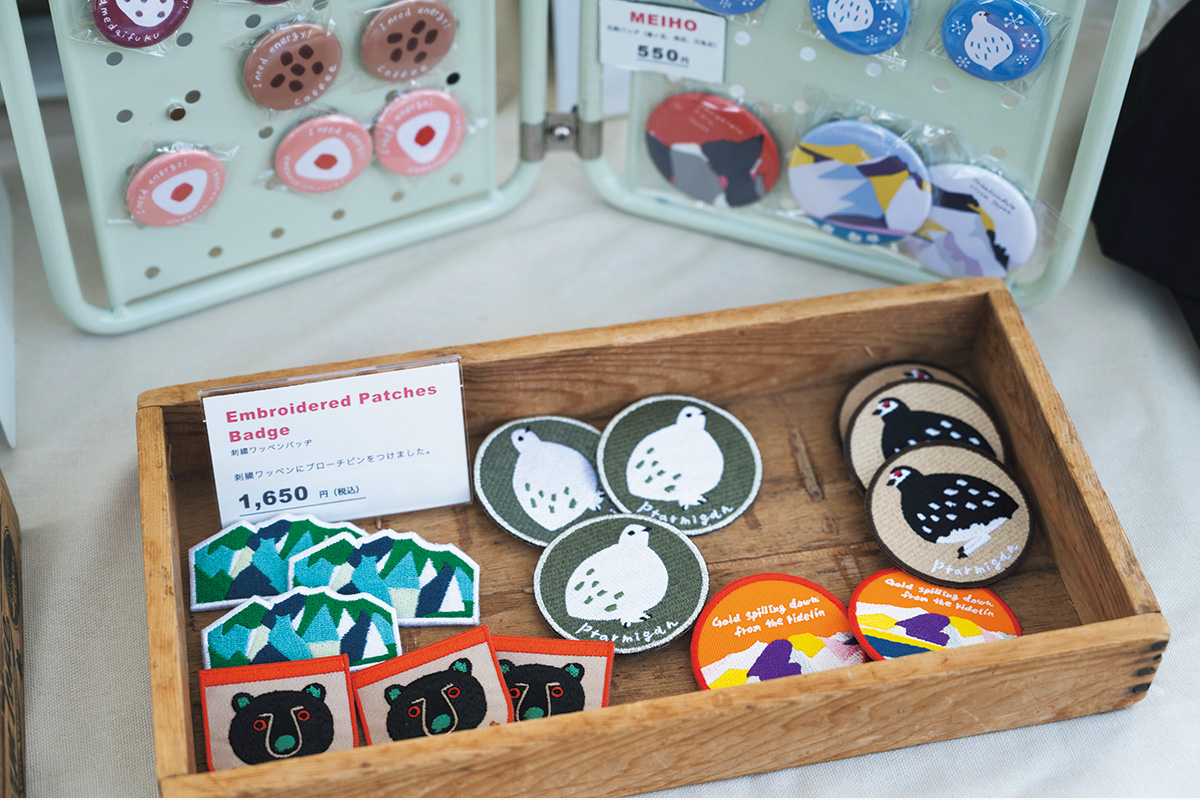 その名のとおり“架空の山のおみやげ店” がテーマのレーベル。店頭にはオリジナルイラストのワッペンバッヂやキャップが。