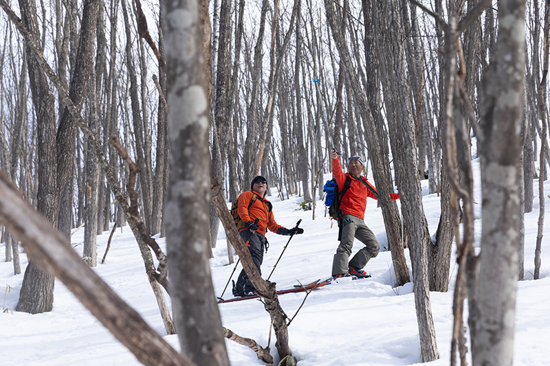 なるほど、と腑に落ちる。仁さんの農園は十勝幌尻岳の山麓にあり、こうして山の端で裏山遊びをすることも、日高山脈の奥に分け入ってスティープな斜面を狙うこともできる。