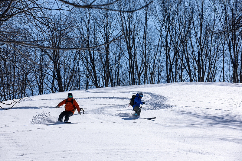 仁さんが僕らのために用意していてくれた、最高の北斜面。ほどよい積雪量があって、まだまだ軽い滑り心地。
