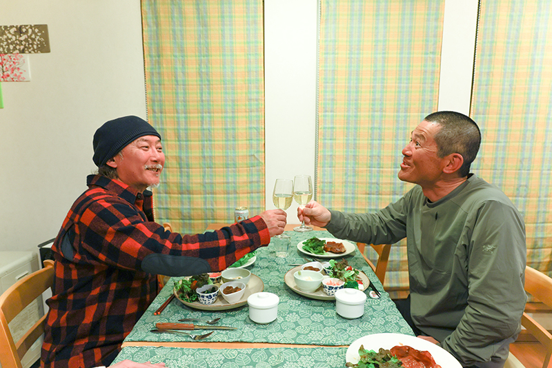 おもしろいオジサンふたりが、大満足でカンパイ。