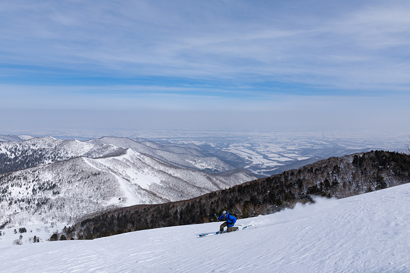 なるほど、と腑に落ちる。仁さんの農園は十勝幌尻岳の山麓にあり、こうして山の端で裏山遊びをすることも、日高山脈の奥に分け入ってスティープな斜面を狙うこともできる。