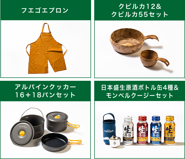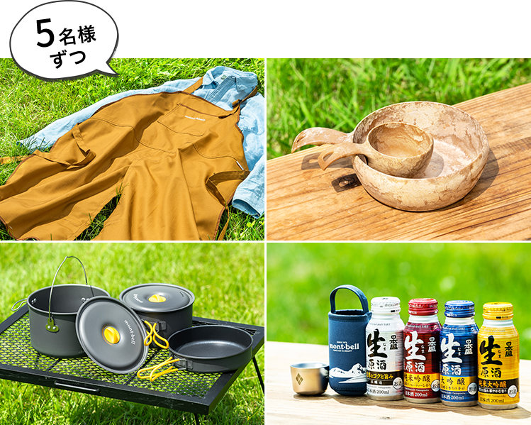 アウトドアアイテムで人気の「モンベル」製品をはじめ、キャンプごはんや山ごはんに便利なアイテムをいずれか1点プレゼント。
