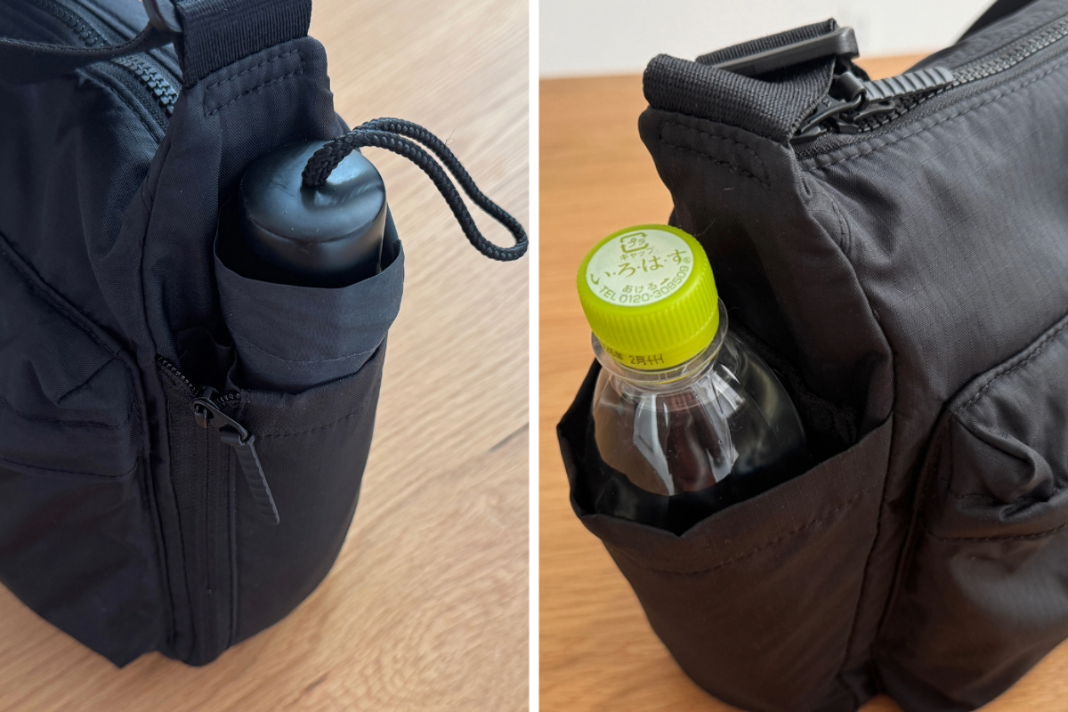 サイドには二つのポケットが付いていて用途別に使い分けもできる