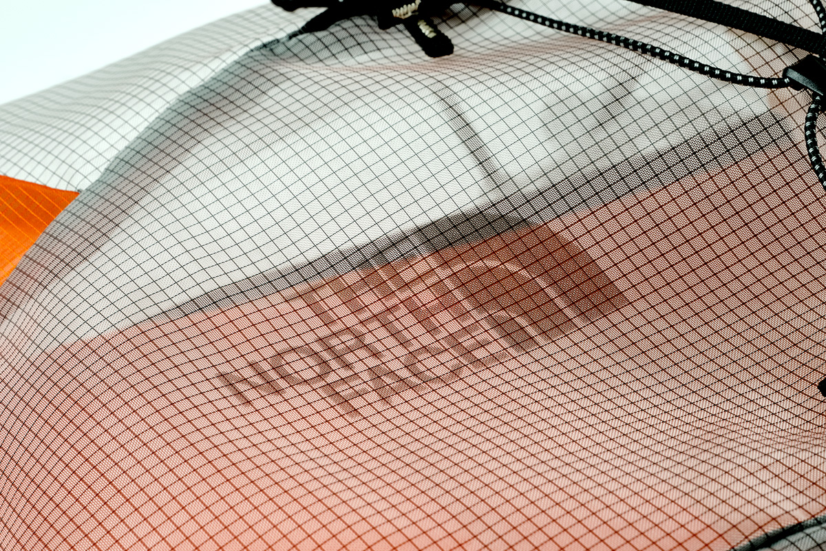 160デニールの太い単一繊維は、マルチフィラメントのように繊維の隙間に保水しないため、圧倒的な疎水性を発揮する。メッシュ構造の通気性も手伝って、優れた速乾性も確保。大量の汗をランナーの肌から遠ざける素材が、登山で雨から荷物を守る役割へ。アクティビティの枠を超えた技術融合の結果だ。