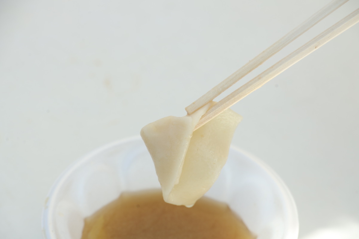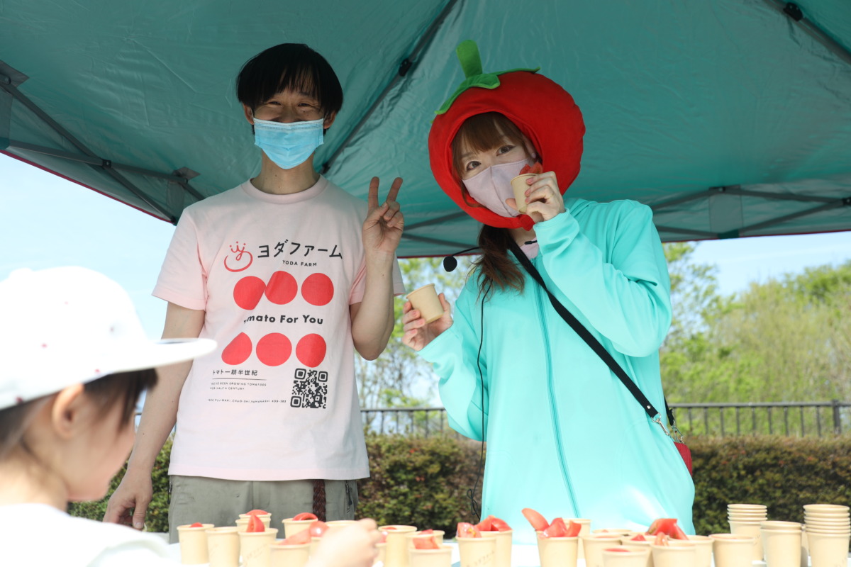 ここでは山梨の郷土料理「みみ」が振る舞われる。平たい麺状の生地を味噌仕立ての汁でいただく素朴な料理で、どこか懐かしさを感じる味わいだ。加えて弁当も用意されており、しっかりとした食事ができるのもこのイベントならではの魅力だろう。