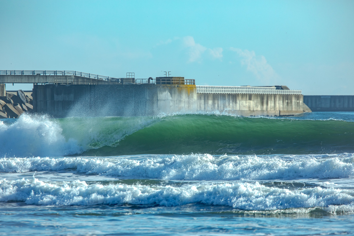 「北風が増える秋は、北泉のベストシーズン。台風の位置によっては、1週間程度、良い波が続くこともあります」。ムネ〜アタマのパワフルな波がブレイクするため、上級者も大満足。「真価を発揮すれば、堤防脇のレフトにいいバレルが登場。シーガルか3mmウエットスーツで入れる時期なので、ノーストレスで最高のサーフィンを楽しめます」。その後に訪れる冬は、5mmセミドライにブーツ、グローブ、ヘッドキャップなどを装備。東北サーファーの必需品だ。「冬は面がクリーンな日が多いです。ただ、西風が多く、波が良くてもサーフボードが降りていかないこともあります」。北泉は、さまざまなうねりや風に敏感がゆえ、一年中波がブレイク。つまり潮目によってはカレントも強くなるので、1人では海に入らないようにしたい。