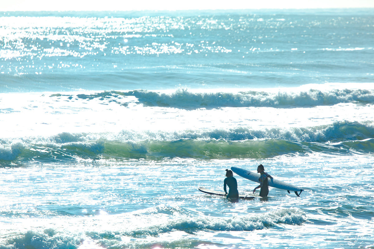 朝イチは仕事前のローカルサーファーで賑わう北泉。とはいえ、湘南や千葉の海と比べると、その数は圧倒的に少ない。トリップサーファーには嬉しい光景だが、地元の人に配慮するなら、その後の時間帯を狙いたい。「平日の昼間などは、かなり人が少ないですよ」。オープンな雰囲気漂う北泉海岸は、ショートボードからロングボード、SUPまでOK。波も十分にある。「近隣には駐車場が整備されていないサーフポイントもあるので、停める場所がわからなかったら地元のサーファーに聞いてみてください」。ルール&マナーを守りながら、楽しくサーフィン! ショートボーダーにも配慮して、みんなで北泉の波をシェアしよう。