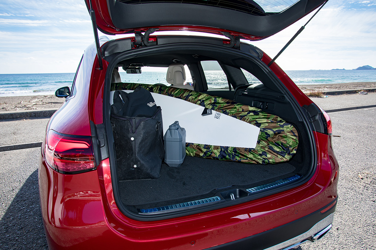 「まだまだラゲッジに余裕がある。ライブツアーの移動でも重宝するかも。楽器やアンプなど、サーフィンより道具が多いんですよ。いつもはテトリスみたいに計算しながら搭載してるけど、GLCなら余裕がありますね。アクティブに動きたい自分にはすごく合ってる」